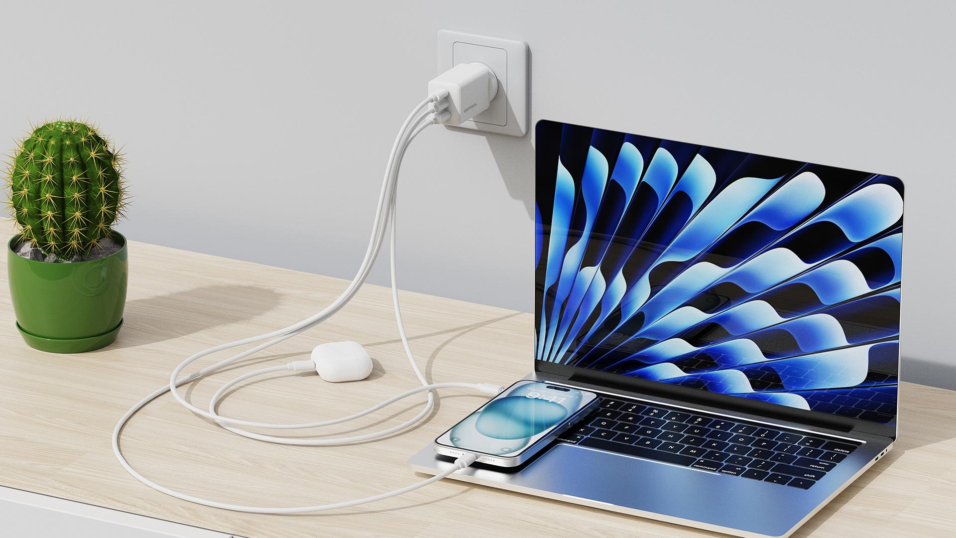 With 67W of power for charging a laptop, phone and tablet at the same time