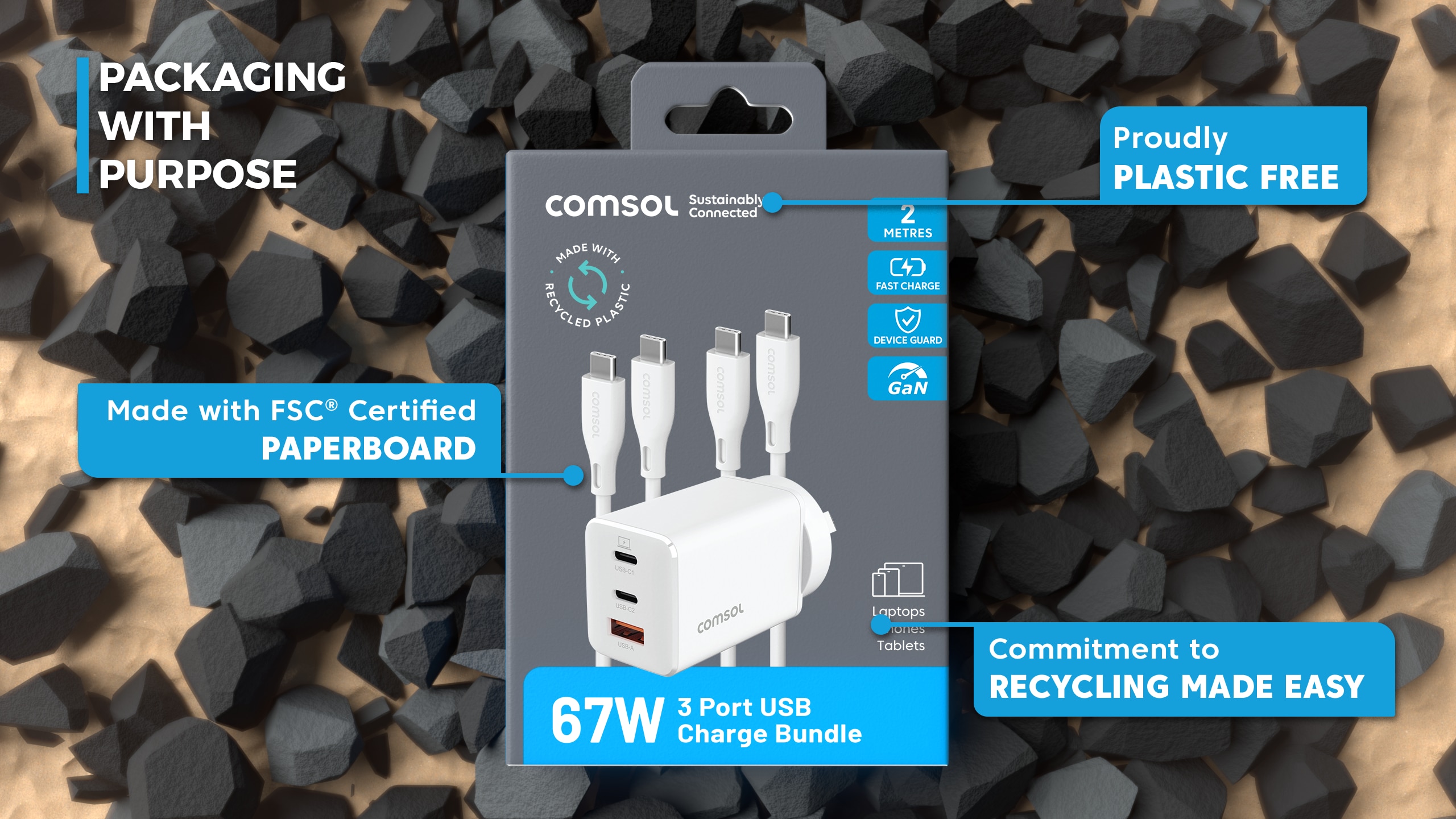 67W USB GaN Charger with 2 x USB-C Cables
