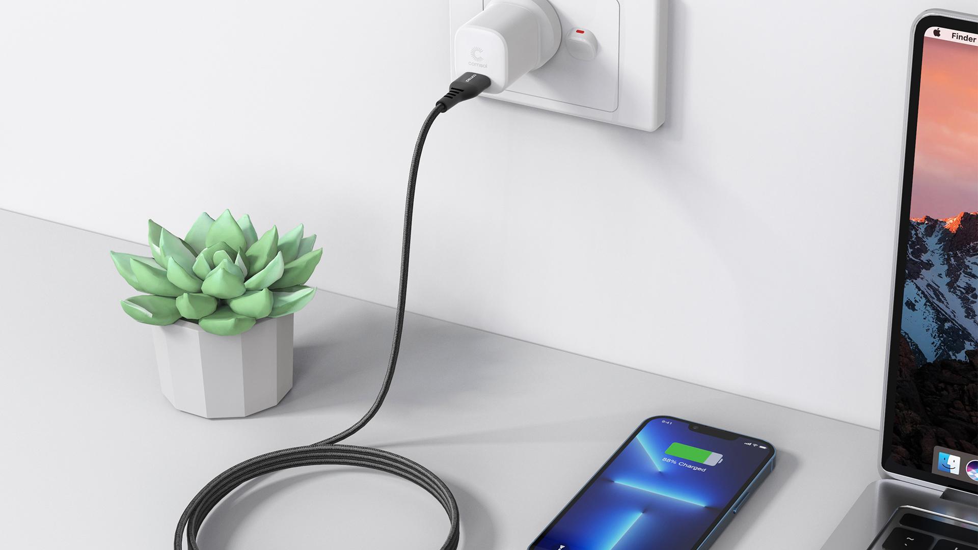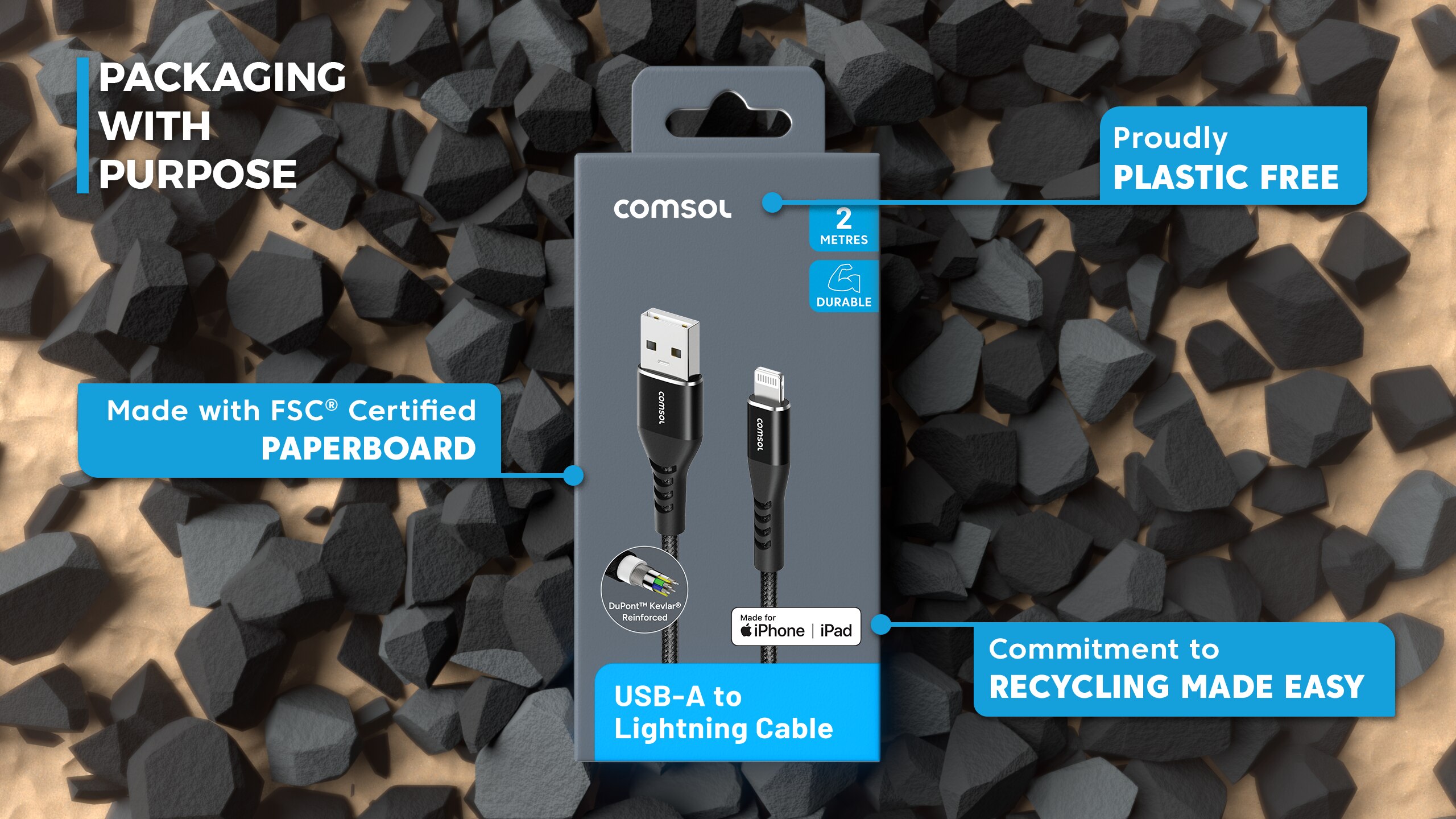 2m USB-A to Apple Lightning Cable Reinforced with Aramid Fibre - Black