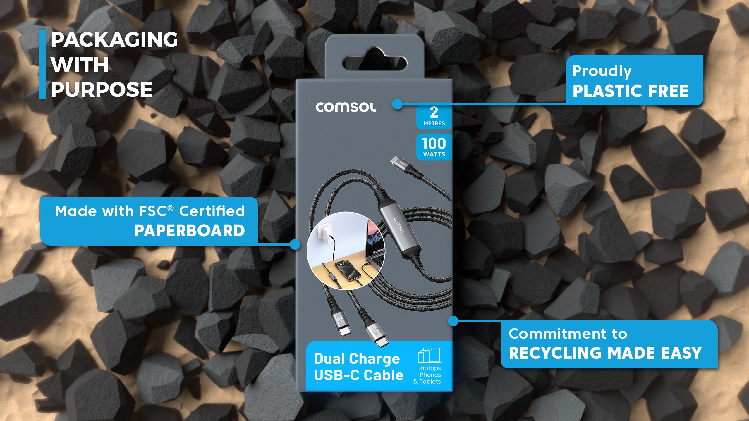 2m USB-C to 2 x USB-C Dual Charge Cable 100W