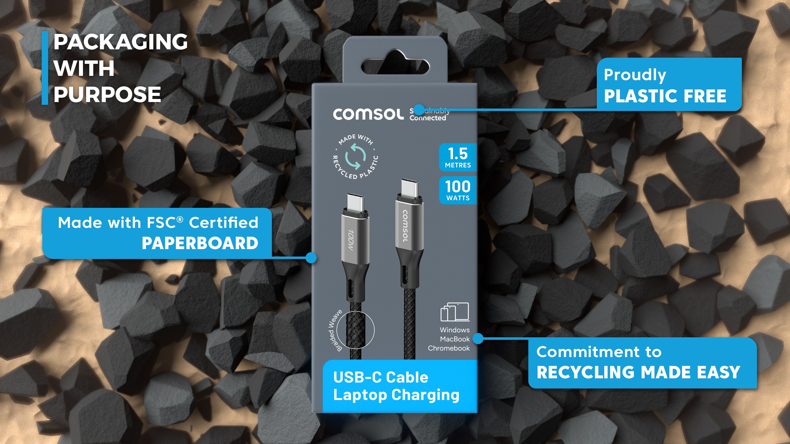 1.5m 100W USB-C to USB-C Cable Black