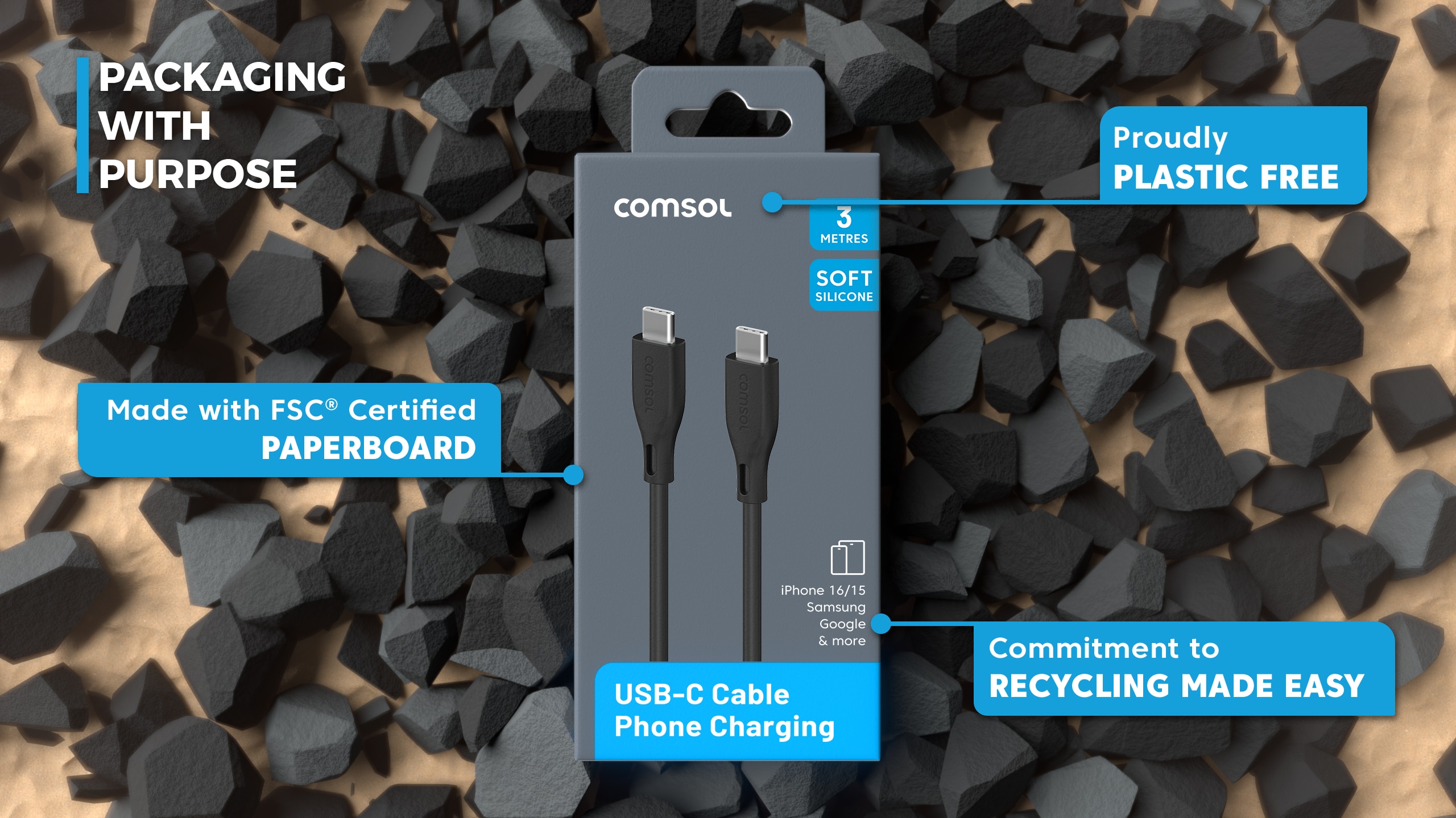 3m USB-C to USB-C Silicone Cable Black
