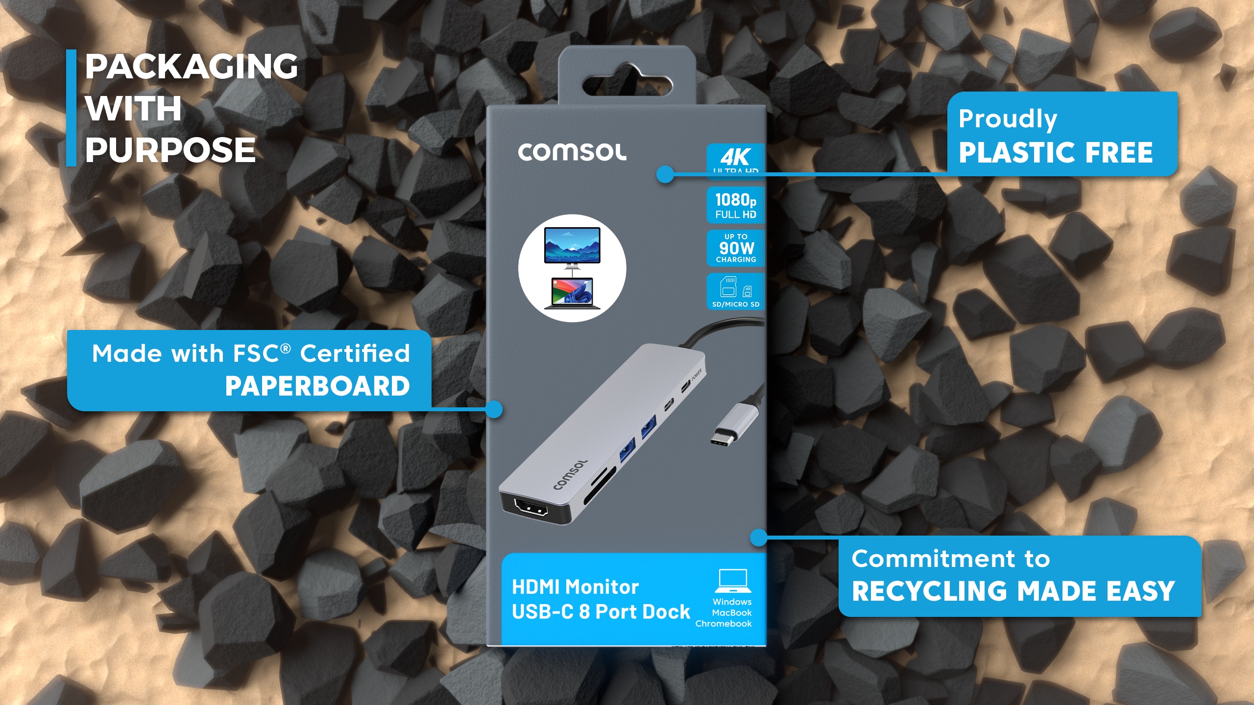 Compatible with modern USB-C laptops that support video output over USB-C (DisplayPort Alt Mode).