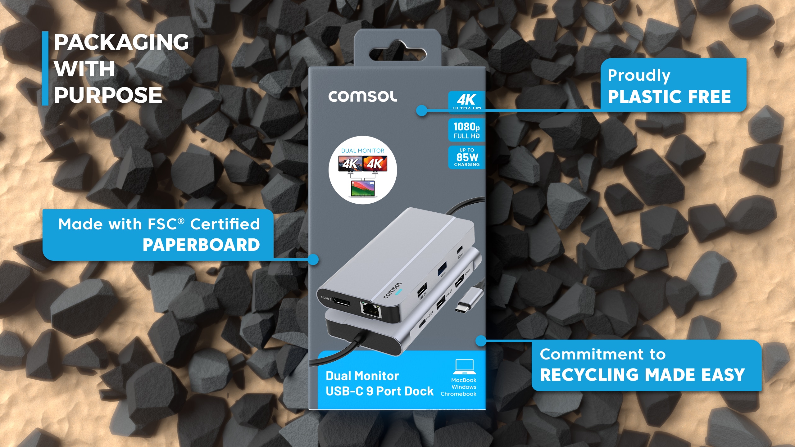 Supports USB-C chargers up to 140W and provides up to 85W of power for laptop charging