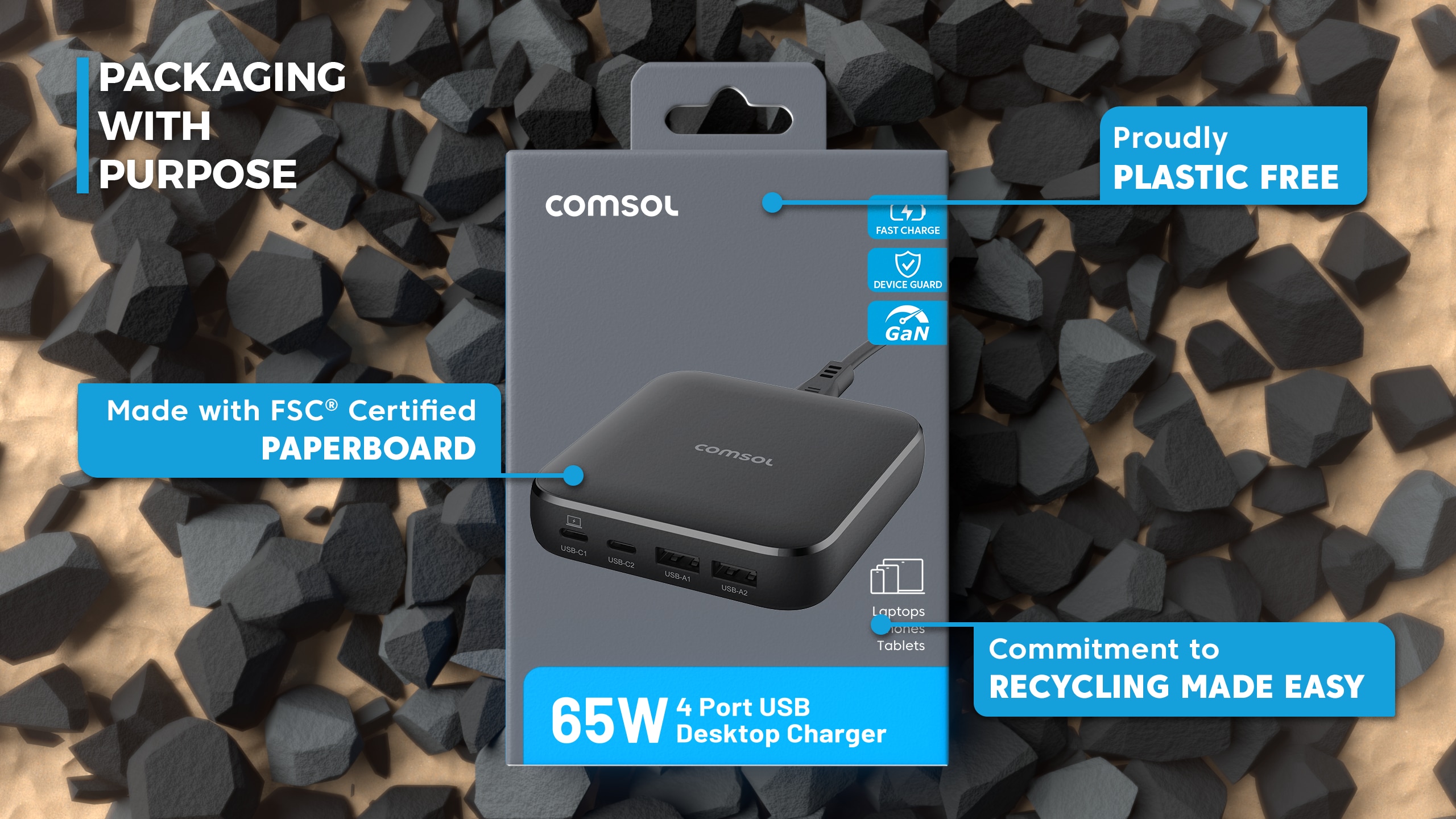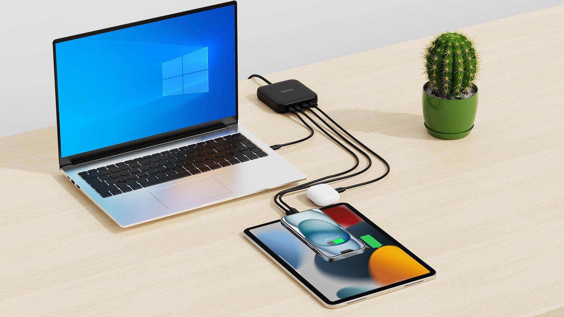 With 65W of power for charging a laptop, phone, iPad and AirPods at the same time