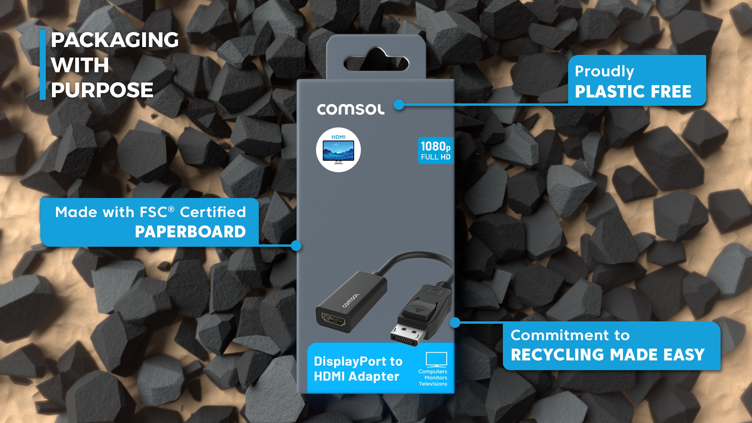 Connect a desktop computer or notebook with a DisplayPort connector to a monitor, projector or HDTV with an HDMI connector.