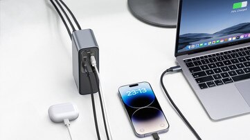 Connect your laptop to a monitor, USB devices and a wired network via a single USB-C connection, while still having enough power to charge your phone