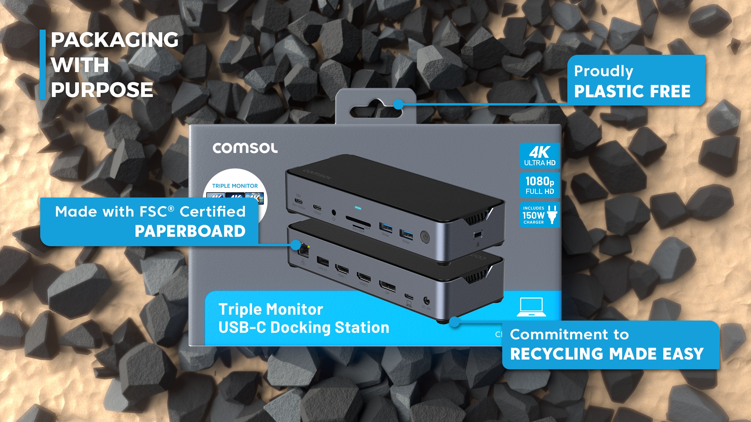 Included to power all connected devices and provide up to 90W of USB-C power for laptop charging