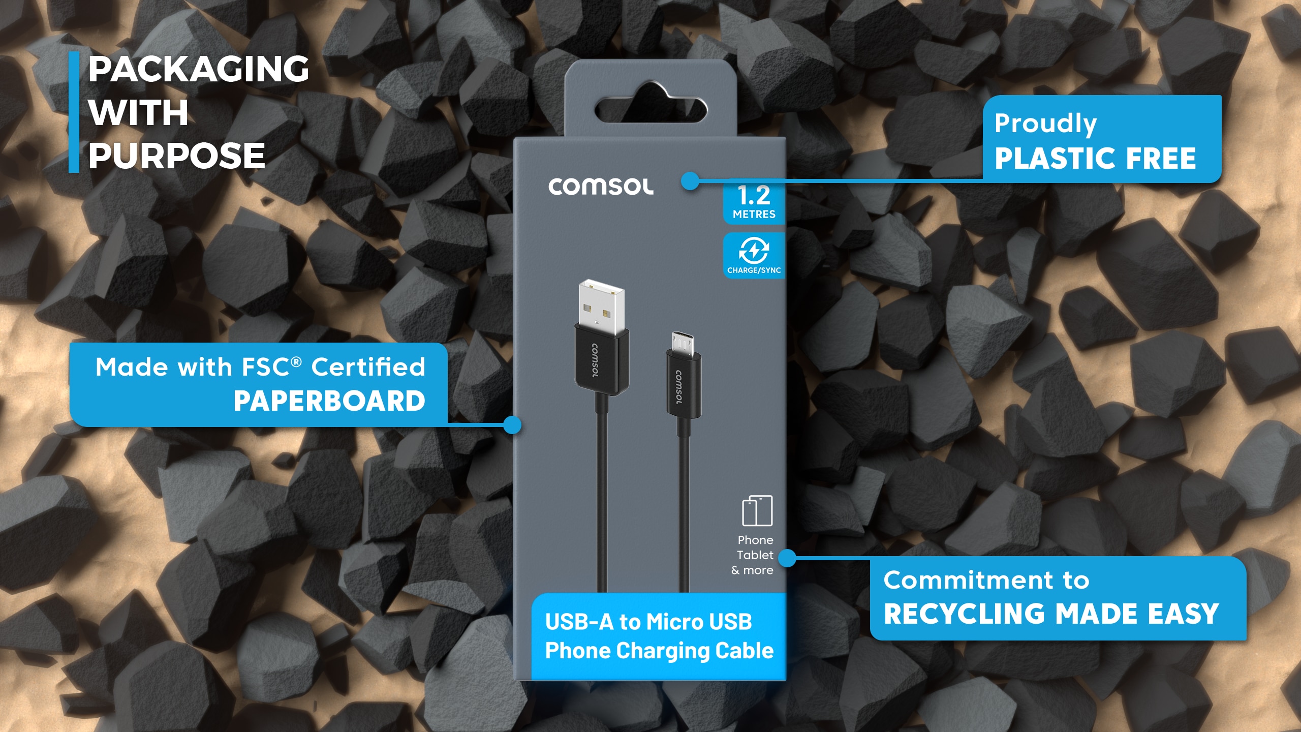 1.2m Micro USB Charge & Sync Cable - Black