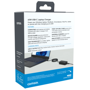 for laptops and tablets supplied with USB-C chargers from 30W to 65W